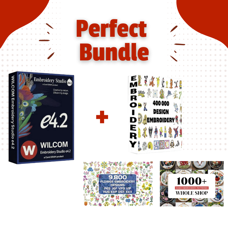 Unlock professional embroidery freedom with Wilcom Embroidery Studio e4.2, bundled with over 400,000 premium embroidery designs, 9,800 floral patterns, and a massive shop-wide bundle of hand embroidery templates β all for lifetime use.